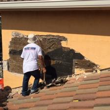 Precision Painting & Waterproofing completed a stucco repair and repainted the exterior of this home.